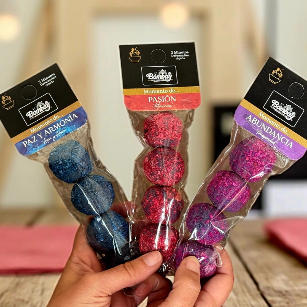 Las Esferas Bombay están pensadas para una defumación rápida: en pocos minutos perfuman y ayudan a crear una sensación de limpieza, calma y armonía en tu casa, tu negocio o tu espacio de trabajo 🏡✨.