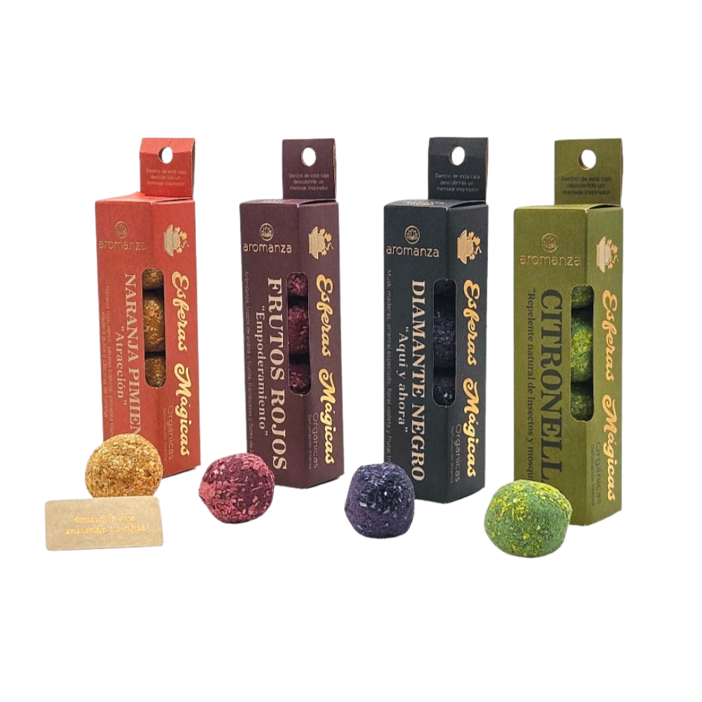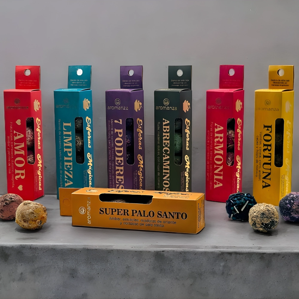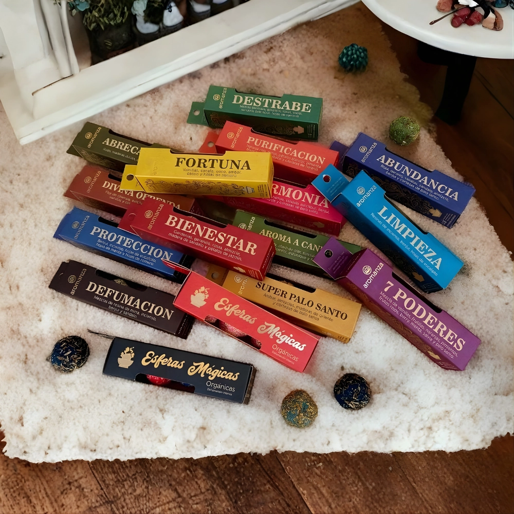 | Aroma | Limpieza, Abre Caminos, Súper Palo Santo, Fortuna, Armonía, 7 Poderes, Defumación Completa, Amor, Purificación, Bienestar, Protección Completa, Destrabe, 4 Elementos, Abundancia, Divina Ofrenda, Aroma a Cannabis, Frutos Rojos, Naranja Pimienta, Diamante Negro, Citronella |