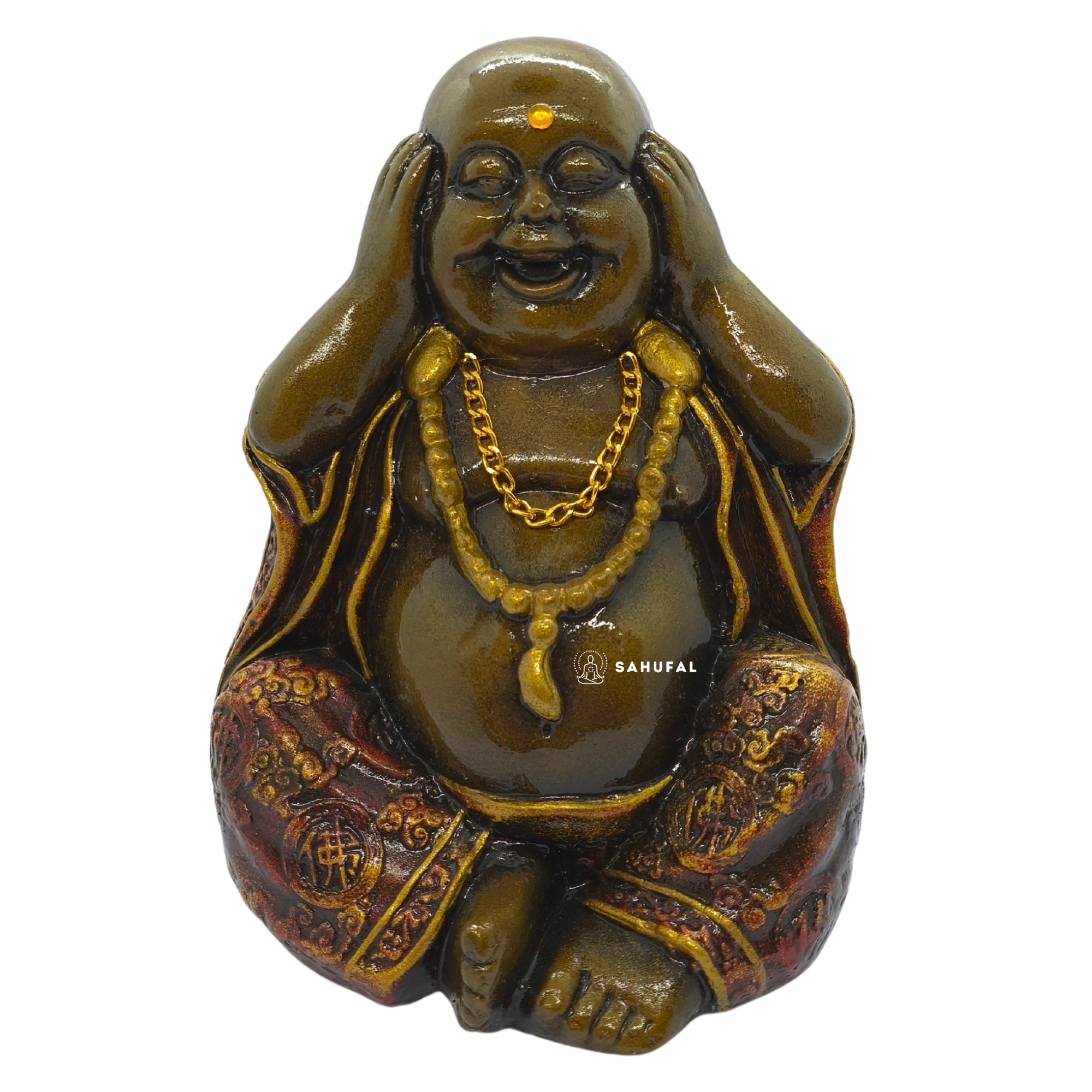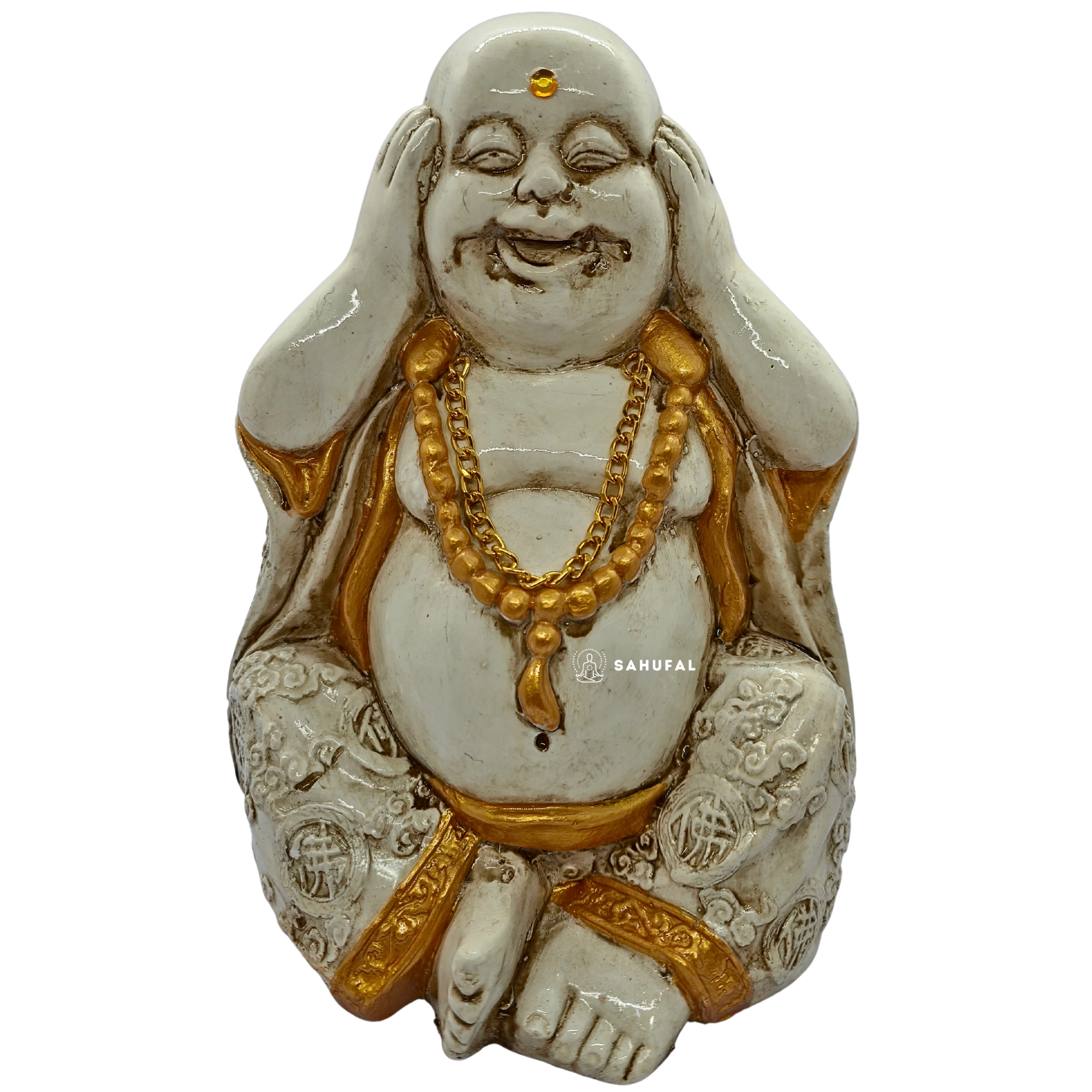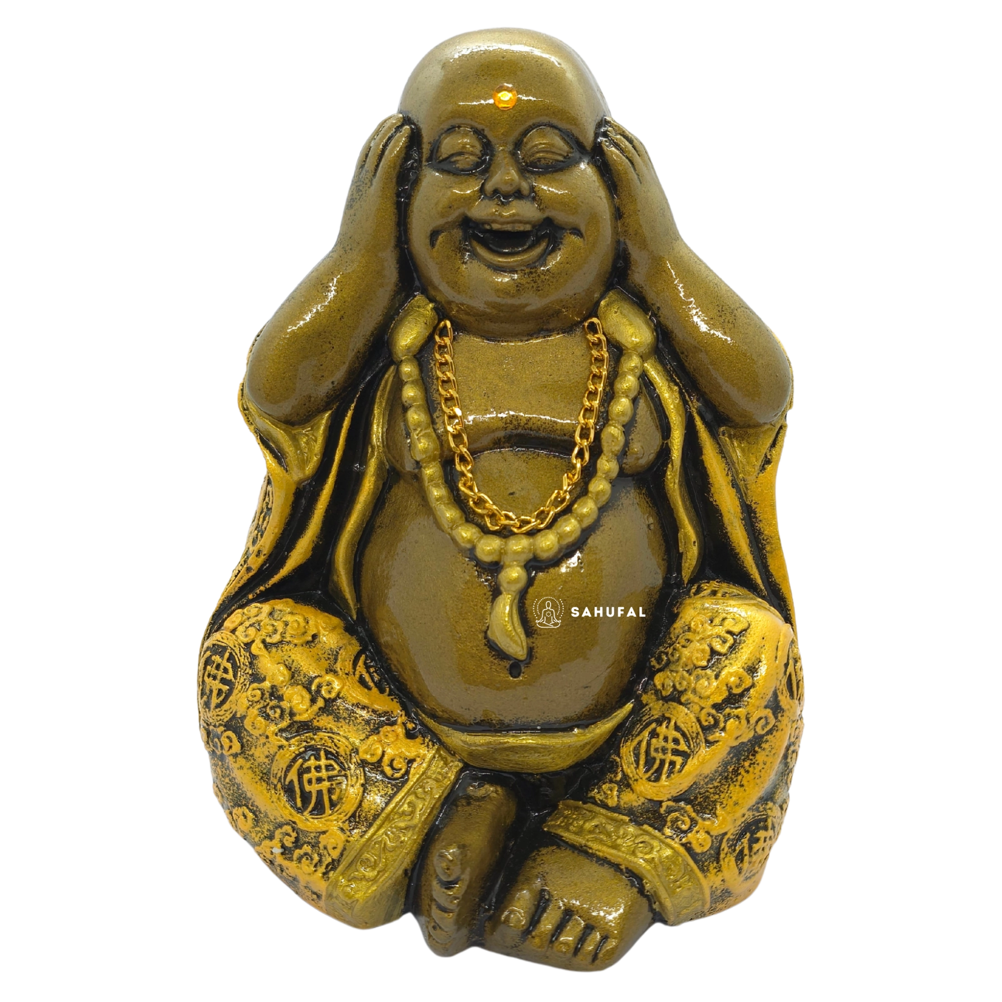 Este Buda no solo es un elemento decorativo, sino también un símbolo espiritual de alegría, riqueza y plenitud que invita a mantener la buena energía en el ambiente.
