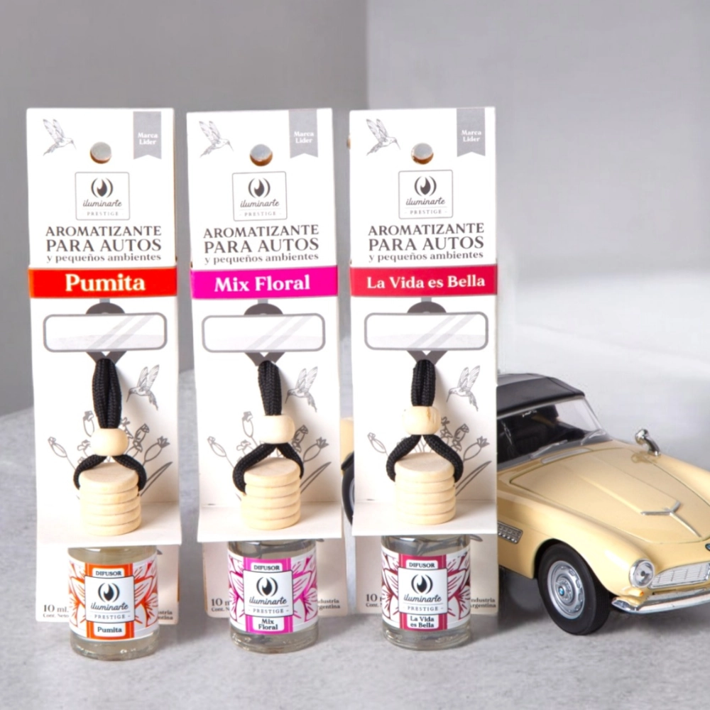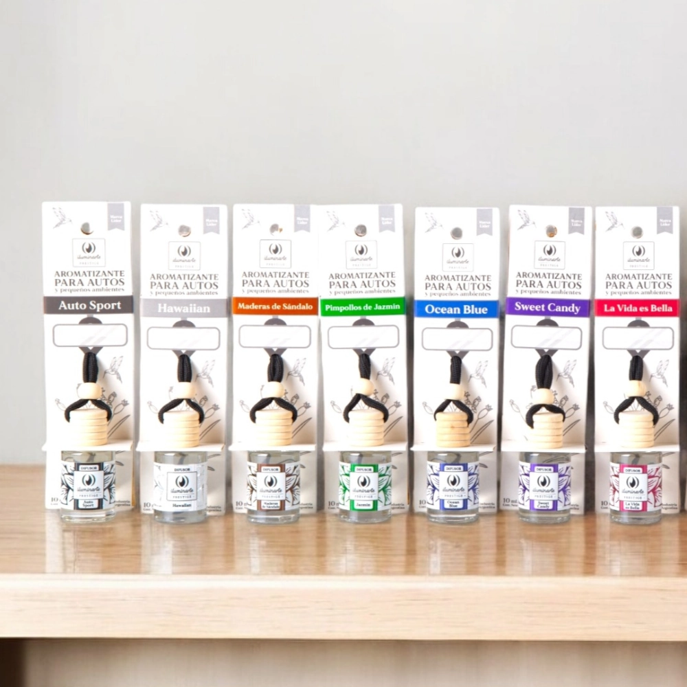 | Aroma | Auto Sport, Citric Orange, Ocean Blue, Hawaiian, Maderas de Sandalo, La vida es Bella, Sweet Candy, Pumita, Mix Floral, Pimpollos de Jazmín |