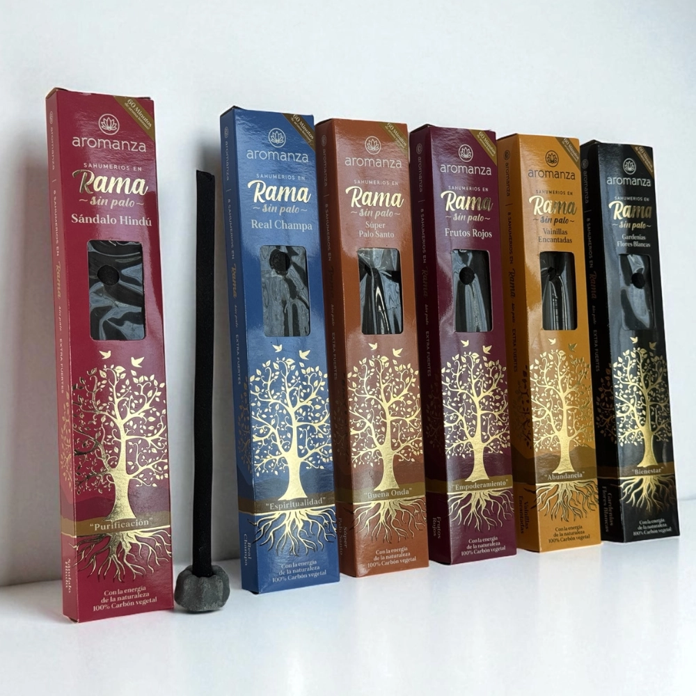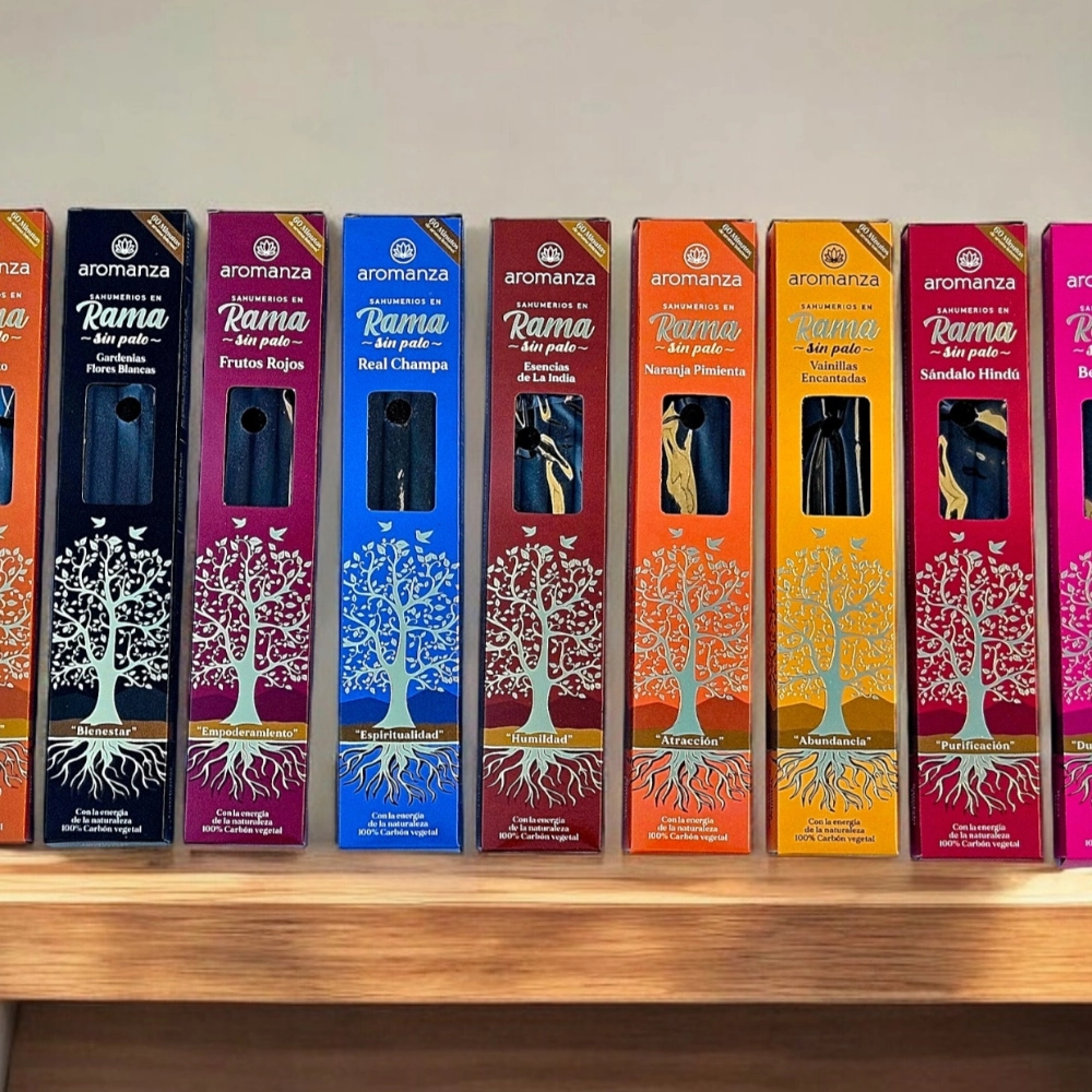 | Aroma | Naranja Pimienta – ATRACCIÓN, Super Palo Santo – BUENA ONDA, Sándalo – PURIFICACIÓN, Frutos Rojos – EMPODERAMIENTO, Real Champa – ESPIRITUALIDAD, Berry Kiss – DULZURA, Gardenia y Flores Blancas – BIENESTAR, Esencia de la India – HUMILDAD, Fragancia Oriental – MEDITACIÓN, Vainillas Encantadas – ABUNDANCIA |
