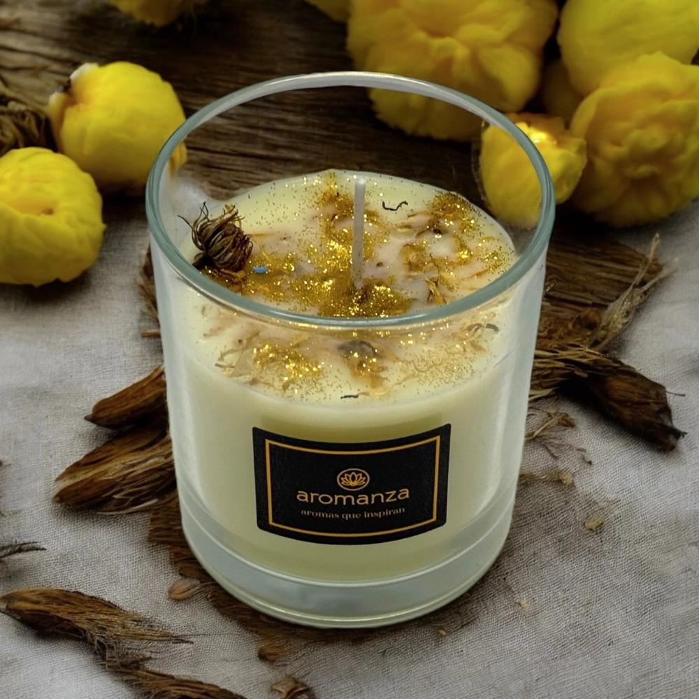 Su “inclusión” le da ese toque premium y artesanal: pequeñas flores y pétalos que acompañan la fragancia y convierten cada encendido en un mini ritual de calma 🧘♀️🌙. Ideal para transformar tu casa en refugio: luz cálida, perfume elegante y vibra linda 🏡🧿