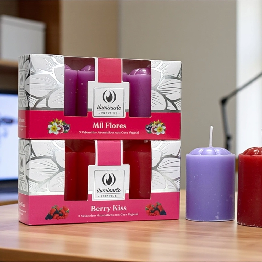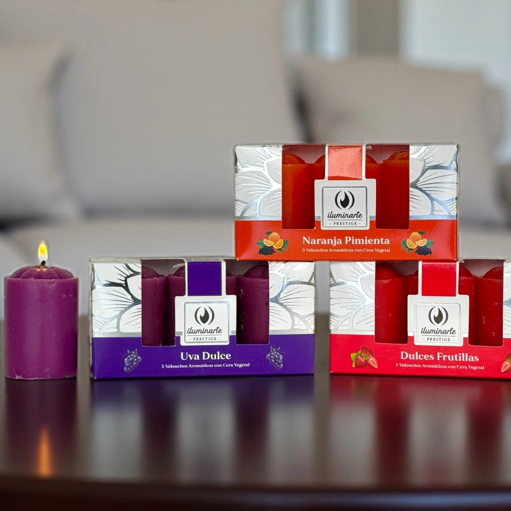| Aroma | Mango – maracuyá, Vainillas encantadas, Dulces frutillas, Capullos de jazmín, Limón, Lavanda francesa, Uva dulce, Rosa búlgara, Citronella, Coco, Mil flores, Naranja pimienta, Sándalo, Berry kiss, Violeta, Super palo santo, Real champa |